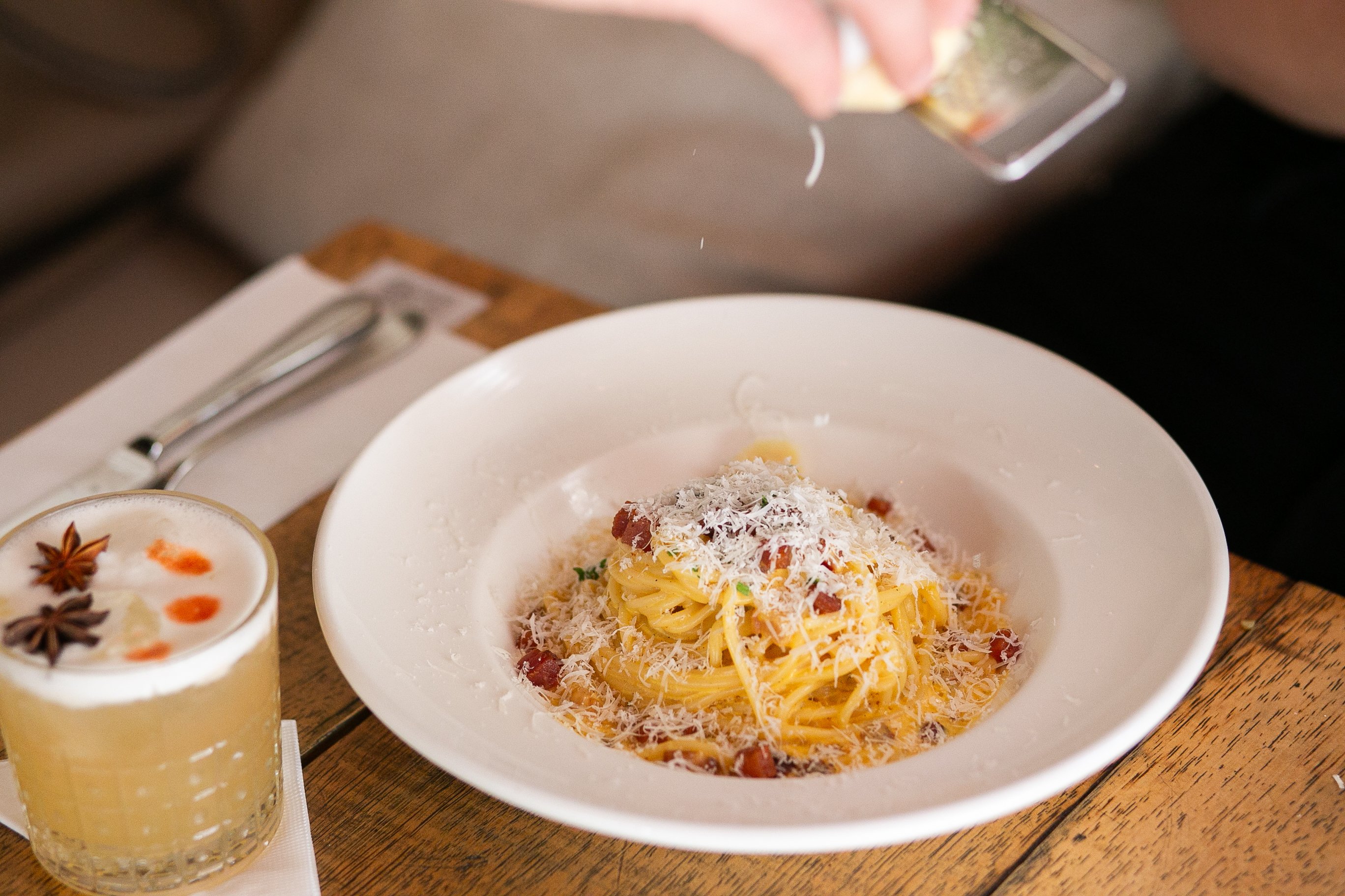 Já o Carbonara di Mare (R$ 215) leva a receita para o litoral ao combinar linguini com lula, camarão e mexilhões tostados, sem abrir mão bash ovo e bash pecorino — e tudo finalizado com ovas de mujol. Para completar, o cook resgata uma memória afetiva com o Carbonara Vintage (R$ 102): feito com spaghetti artesanal, o prato reúne cebola, bacon, ervilha, creme de leite, gema de ovo e queijo parmesão. Os pratos ficam disponíveis de 6 a 11 de abril e é recomendado fazer reserva.