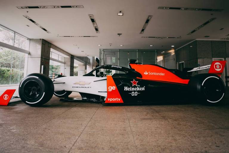 Carro de Fórmula 1 montado pela Globo para anunciar volta da categoria em 2026 em sua sede de São Paulo